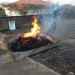 Logo após o almoço e na presença do seu público habitual (alunos do pré-escolar e do ATL, com as respetivas educadoras e professoras), o Sr. Luís azafamou-se nos preparativos da fogueira para assar as castanhas.